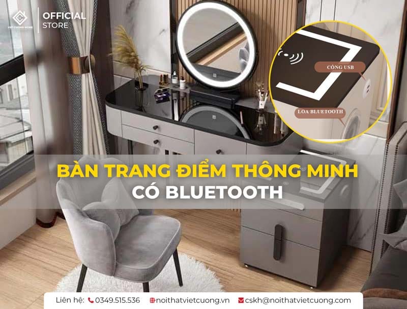 Bạn có thích cảm giác vừa thư giãn nghe nhạc, vừa chăm chút cho nhan sắc mỗi ngày? Với bàn trang điểm thông minh có Bluetooth, điều đó hoàn toàn có thể trở thành hiện thực. Sản phẩm nội thất này không chỉ là nơi để bạn make-up mà còn là góc thư giãn lý tưởng, giúp bạn bắt đầu ngày mới với năng lượng tích cực và tâm trạng hứng khởi.