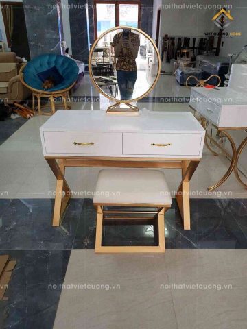 Nội thất Việt Cường nhận sản xuất và thi công đồ nội thất Inox theo yêu cầu quáy khách hàng. Quý khách có thể thay đổi thiết kế và màu sắc cũng như kích thước, chúng tôi sẽ sản xuất và cung cấp cho bạn mẫu bàn trang điểm theo ý muốn. Liên hệ Việt Cường ngay ngày hôm nay để nhận những ưu đãi tốt nhất nhé.